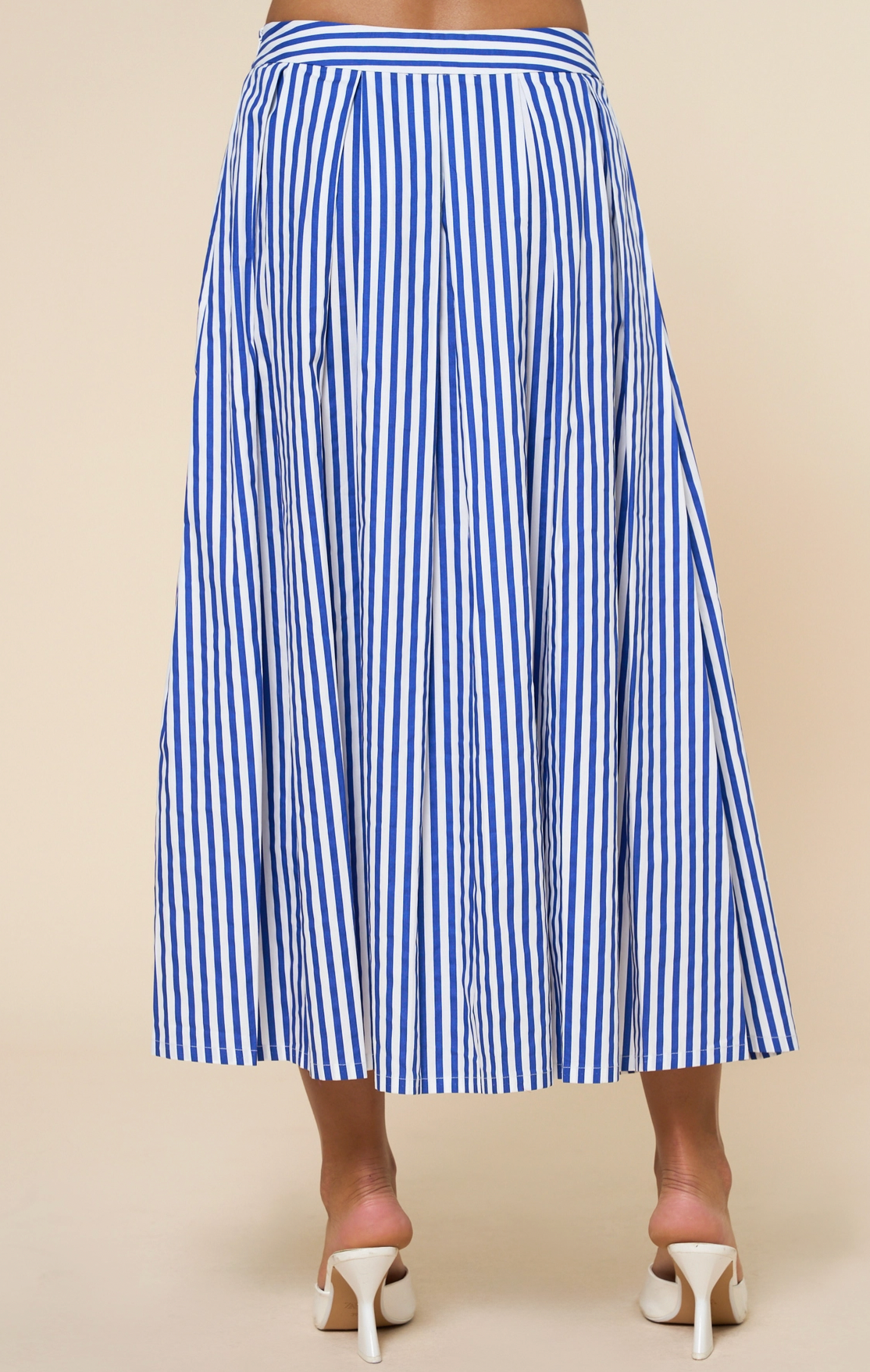 Striped Print Flare Maxi Dress Effortless elegance meets timeless style with this striped print flare maxi dress. The flowing silhouette and dynamic print create an editorial-worthy look that transitions seamlessly from day to evening. Flattering vertical stripes elongate your frame while the flared hem adds movement and dimension. Perfect for those who want to make a statement without sacrificing comfort—this piece becomes an instant wardrobe essential that pairs beautifully with minimal accessories or layered styling.
