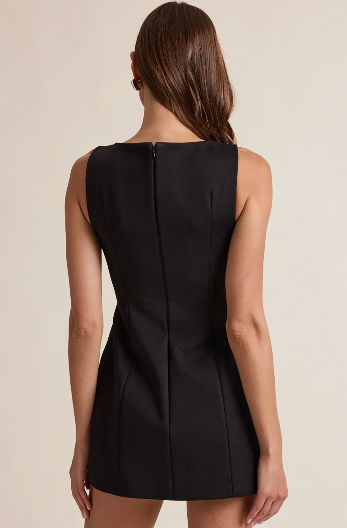 Slip into effortless elegance with The Britney dress in black. This sleek, body-conscious silhouette features a sophisticated boat neckline and sleeveless design for a modern, refined look. The convenient back zipper ensures an easy on-and-off, while the dark solid color works seamlessly from day to night. Perfect for those moments when you want to feel confident and polished without compromising on comfort.