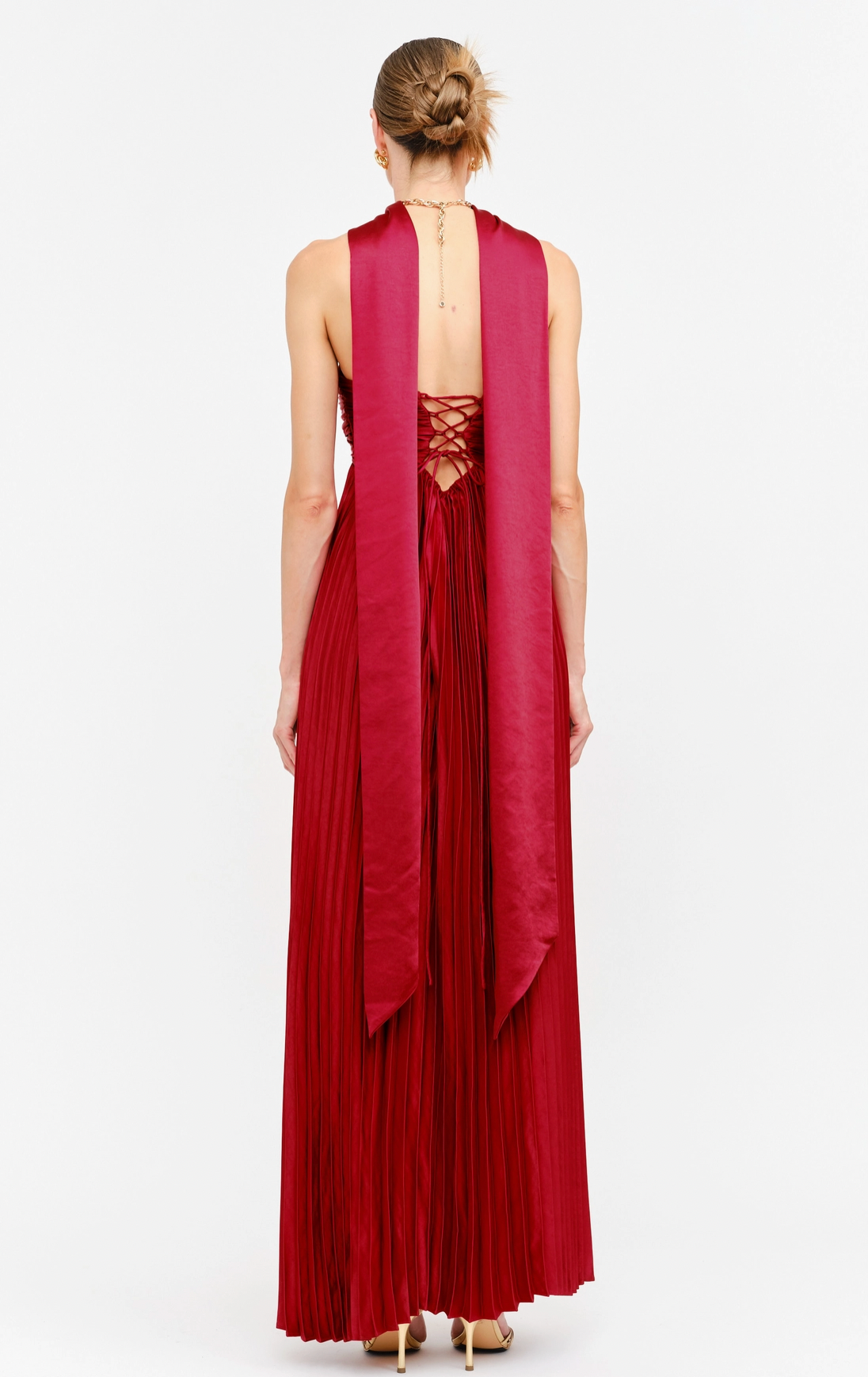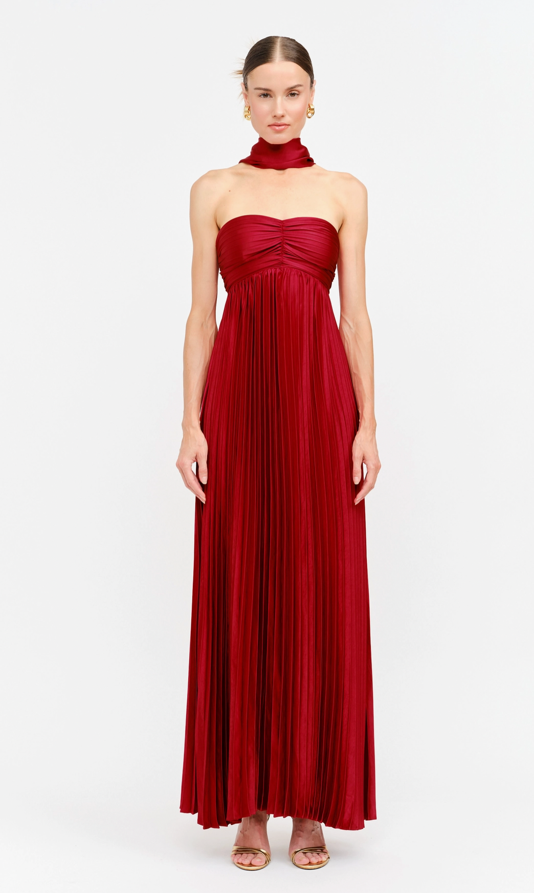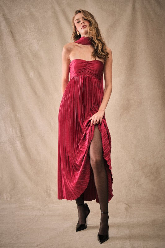 Elevate your evening wardrobe with The Nina dress, a sophisticated strapless design that commands attention. The luxurious satin fabric drapes beautifully, while strategic ruching at the bodice creates a flattering silhouette. A removable scarf detail offers styling versatility, and the lace-up open back allows you to customize the fit perfectly. The flowing pleated skirt moves with grace and elegance, making this the ideal choice for galas, weddings, or any occasion where you want to make a lasting impression.