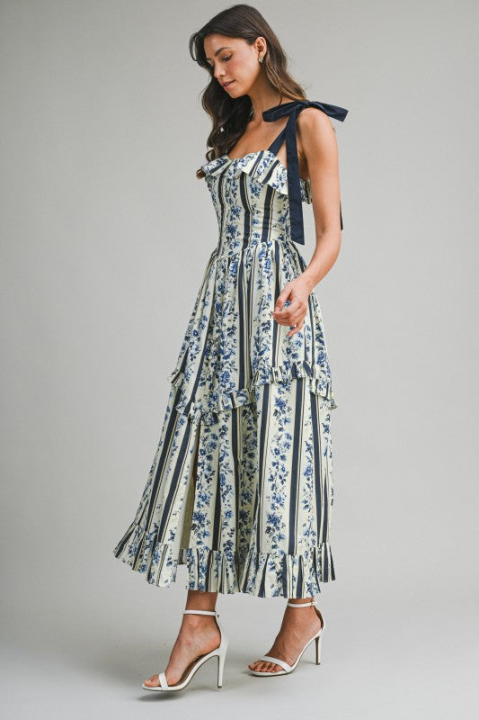 Elevate your everyday style with The Paola dress, a captivating midi that seamlessly blends feminine charm with modern sophistication. This stunning piece features a vibrant floral print set against contrasting shoulders, creating an eye-catching silhouette that flatters from every angle. The self-tie front and button details add an interactive, personalized touch, while the strategic front slit offers movement and contemporary flair. Intricate back smocking provides subtle texture and visual interest, ensuring you'll turn heads whether you're heading to brunch or an evening out. Versatile, elegant, and undeniably chic—The Paola dress is your go-to for making an effortless impression.