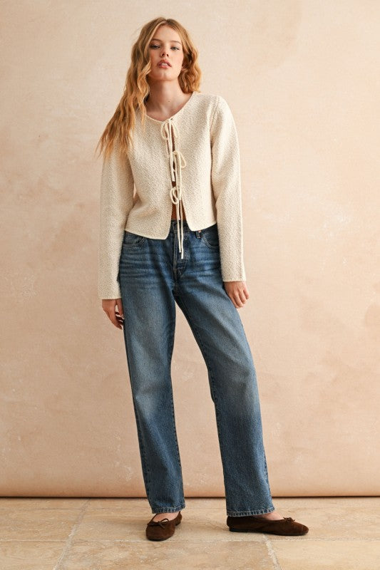 The Nicole cardigan effortlessly transitions from office to evening with its refined two-tone design and graceful tie-front closure. Long sleeves provide polished coverage, while the layered silhouette flatters any frame. Perfect for elevating basics or dressing down your favorite pieces, this sophisticated staple brings understated elegance to your everyday wardrobe.
