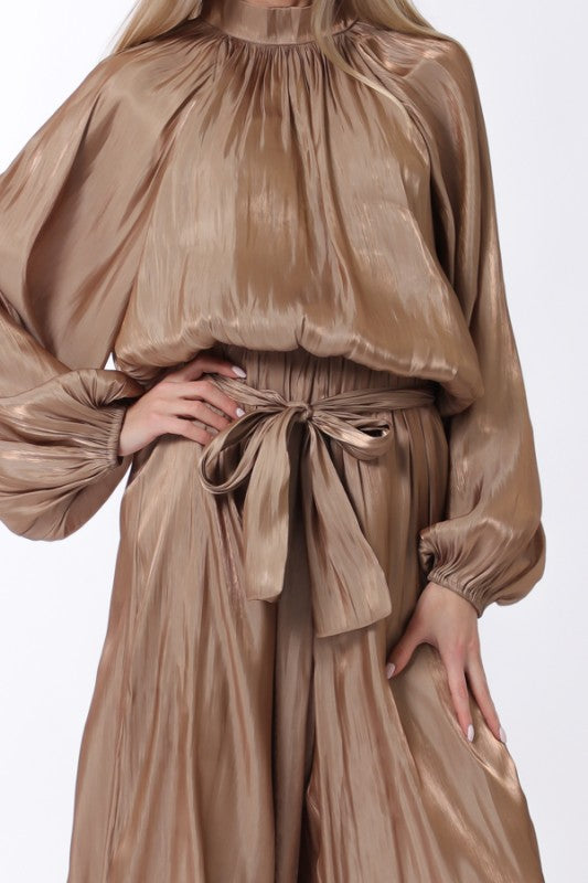 Make a statement in The Maria Renee Jumpsuit, where elegance meets modern comfort. This long-sleeve organza piece features a cinched elastic waistband that flatters your silhouette while the flowing fabric creates an effortlessly sophisticated look. Perfect for elevated occasions or refined everyday wear, the delicate organza drapes beautifully while the structured waist provides definition and support. Transition seamlessly from day to night in a jumpsuit that combines timeless style with contemporary design—your new go-to for looking polished and put-together.