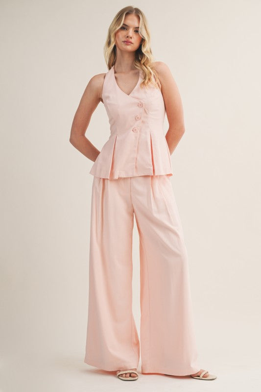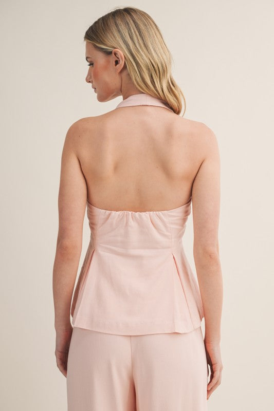 The Ava Top in Baby Rose is a sophisticated asymmetrical halter vest that brings editorial polish to any wardrobe. Featuring a tailored silhouette with strategic draping, this piece transitions seamlessly from layered styling to standalone statement wear. The clean white color way pairs effortlessly with coordinated sets or elevated basics, making it a versatile addition to your premium collection. Perfect for creating aspirational, editorial-inspired looks.
