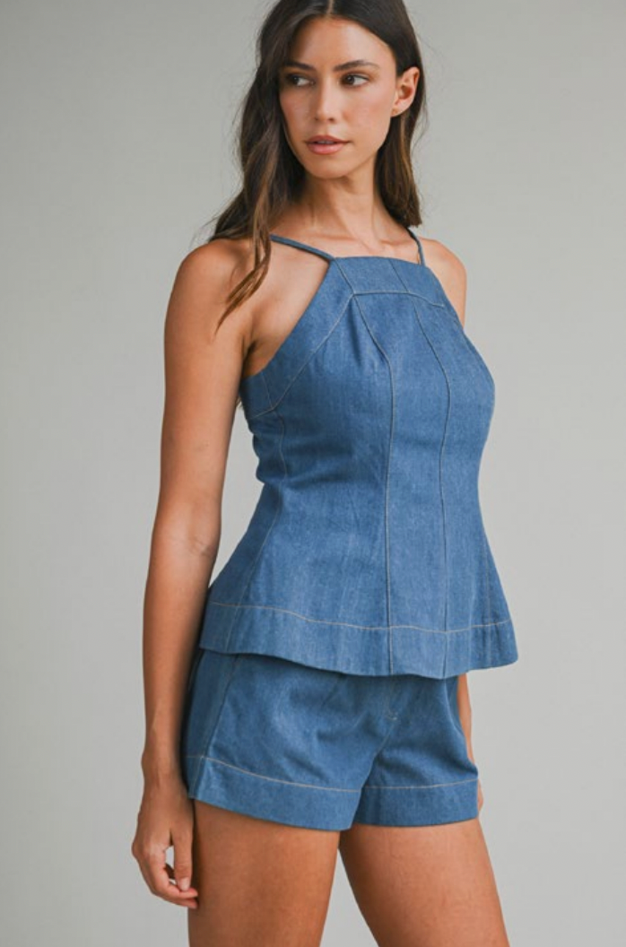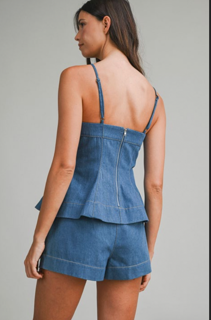 The Zoe set brings effortless style to your everyday wardrobe. This versatile denim collection features a chic apron neck tunic paired with comfortable shorts, creating a coordinated look that transitions seamlessly from casual outings to relaxed weekends. The classic denim construction offers durability and timeless appeal, while the thoughtful design details—including the distinctive apron neckline—add personality without compromising comfort. Perfect for those who value both practicality and fashion-forward styling, this set delivers a polished appearance with minimal effort. Invest in pieces that work as hard as you do.
