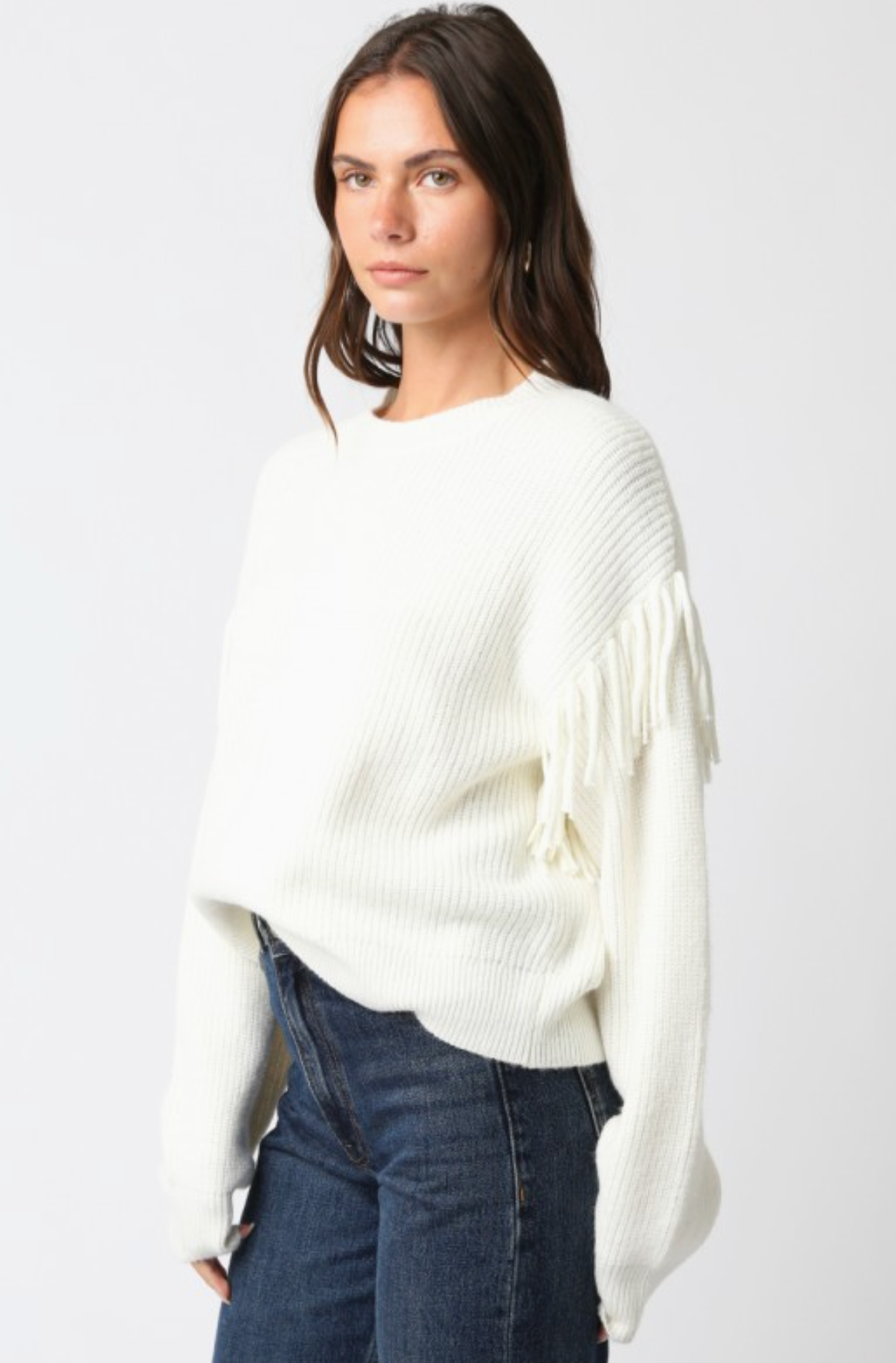 The Karli Knit Top combines effortless style with playful texture. Its relaxed fit drapes beautifully for all-day comfort, while the eye-catching fringe detail adds movement and personality to your everyday wardrobe. Perfect for layering or wearing solo, this versatile piece transitions seamlessly from casual outings to cozy nights in. Elevate your basics with a sweater that feels as good as it looks.