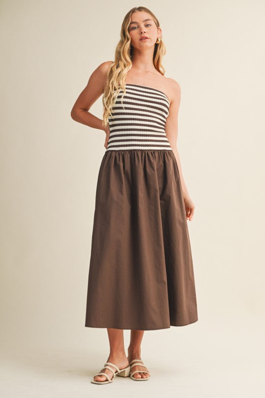 The Andrea dress combines timeless striped detailing with a flattering tube silhouette for effortless elegance. This versatile piece transitions seamlessly from day to night, hugging your curves in all the right places while the classic stripe pattern adds visual interest and dimension. Perfect for those who appreciate understated sophistication, it's a wardrobe essential that pairs beautifully with sneakers, heels, or accessories. Comfortable, chic, and endlessly wearable—the Andres dress is the one piece you'll reach for again and again.